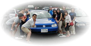 K翌朝、駐車場で記念写真。先頭ですごんでるやくざは一体誰でしょう?山口くん、わかる?