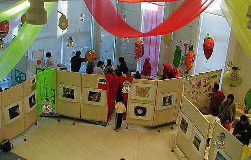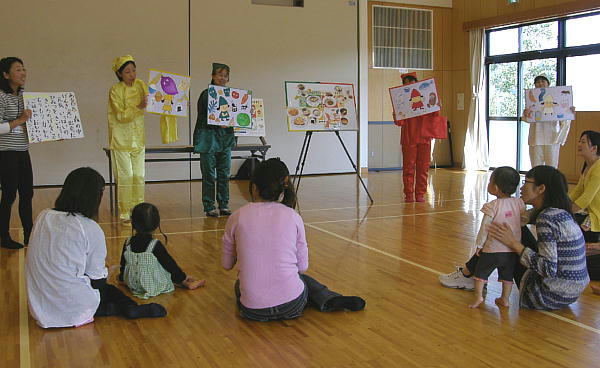 地域で交流することを目的に磐田市の「であいのひろば号」が市内の公民館などへおもちゃを持って出かけていきます。こどもの森のスタッフも、「出前げんきッズ」として衣装やパネルを持って同行させていただくことがあります。日時・場所は広報いわた「みんなで子育て」をご覧ください。